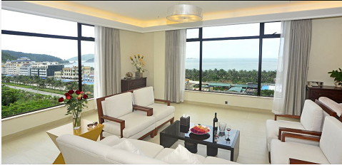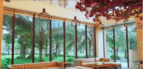 酒店开放式通透大堂,海天一色,相映成趣。